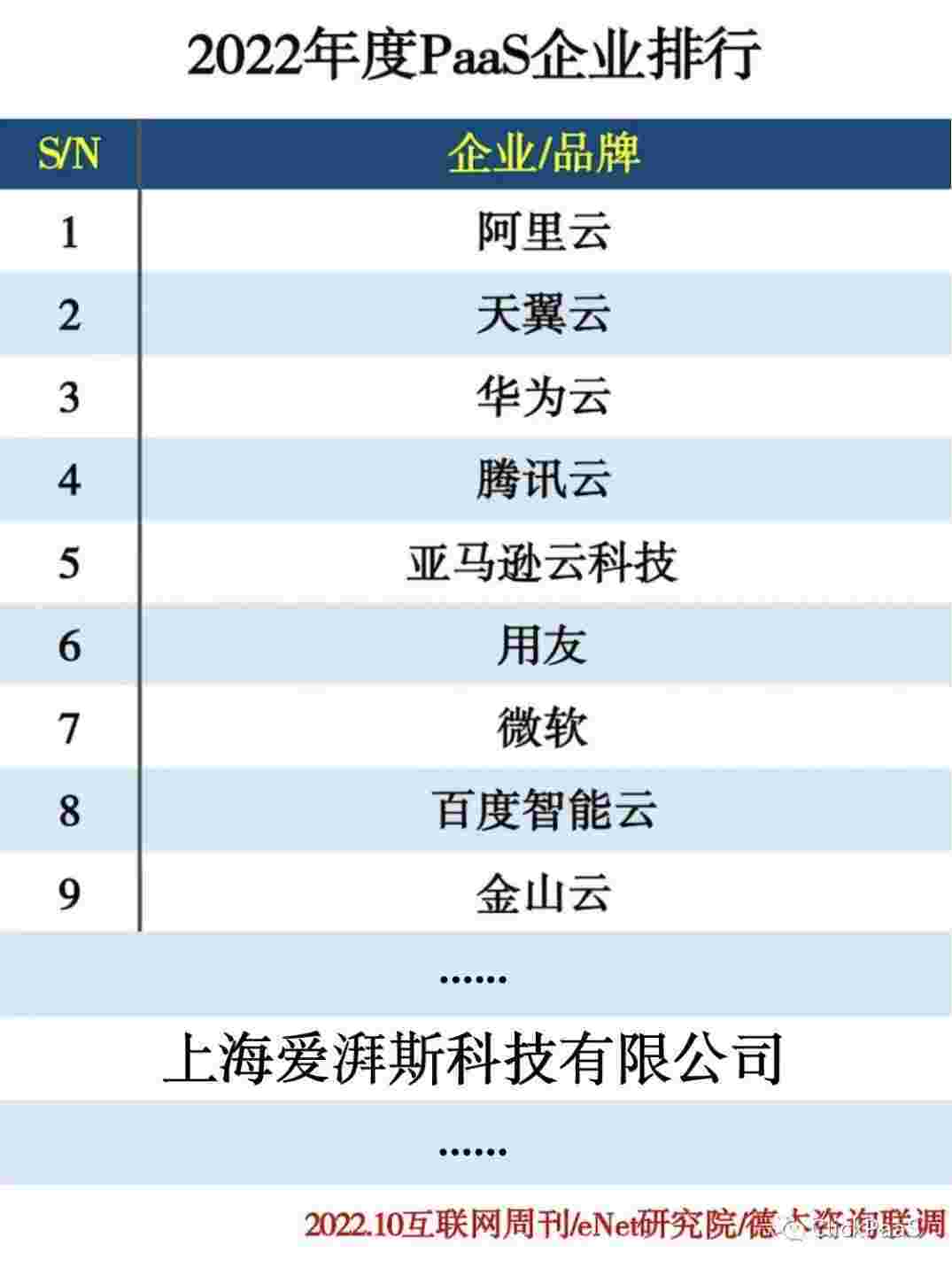 近日,,,,,,,Internet Deep发布了由互联网周刊、、、、、、、eNet研究院、、、、、、、、、德本咨询联合调查的”2022年度PaaS企业排行“榜单,,,,,,,,上海爱湃斯科技有限公司(以下简称NO钱包),,,,,,,,,,,,凭借强大的建模能力,,,,,,,,,,,为各行业头部客户解决复杂业务需求的实践经验以及强大的集成扩展能力,,,,,,,,,入选2022年度PaaS企业排行TOP 50。。。。。。