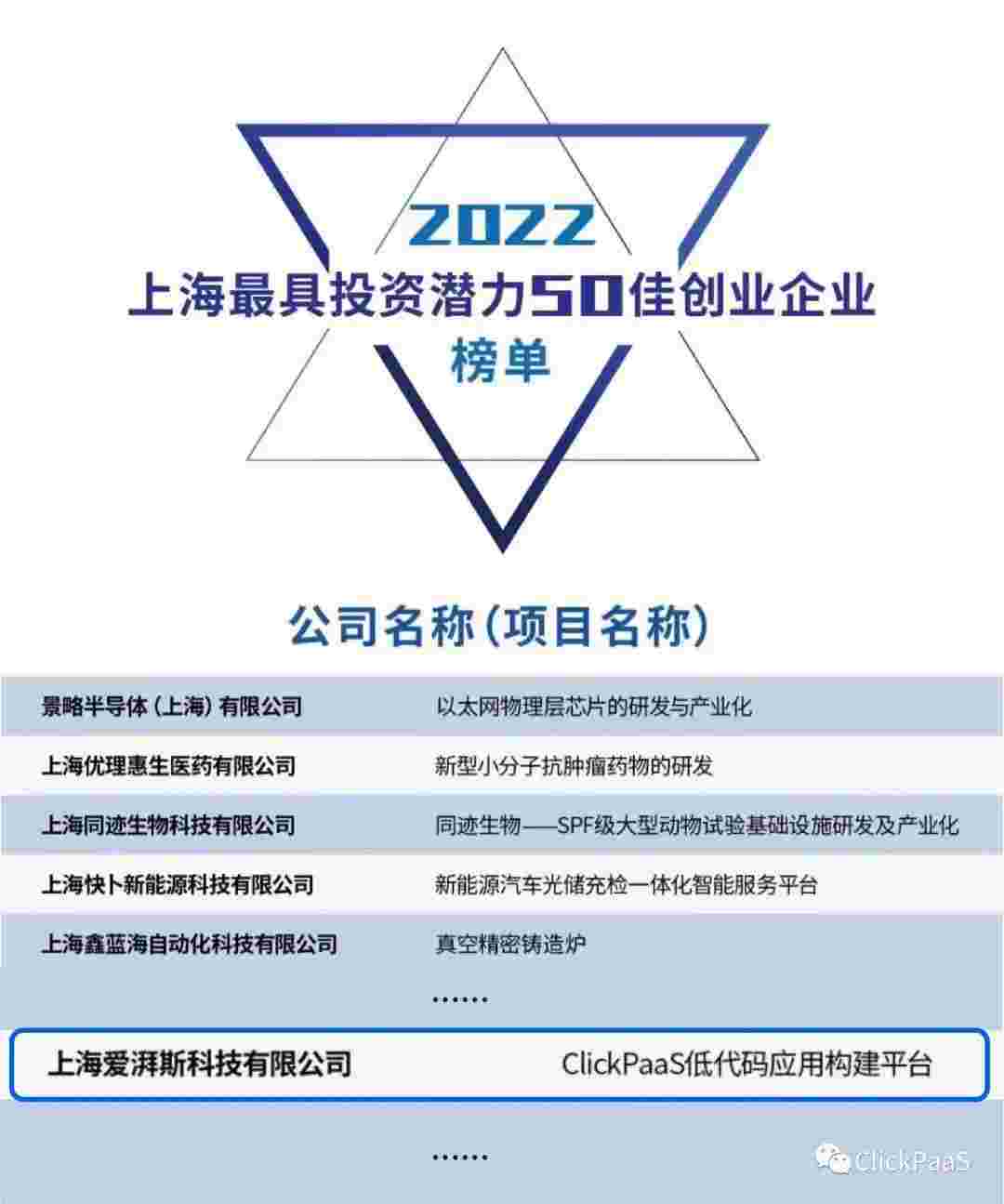 NO钱包 作为国内低代码PaaS平台的领军企业,,,,,,,,,与120家创企入围角逐。。。。。。。期间接受了来自德同资本、、、、、、、领中资本等知名投资机构的10位投资人组成专家评委团的背靠背盲选。。。。。。。。。。。。并最终入围“2022上海最具投资潜力50佳创业企业”榜单,,,,,,,,被列入“上海市重点培育创业企业库”。。。。。。。。。